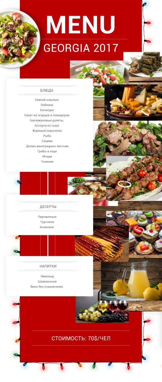 Вечером, приглашаем встретить Новый 2018 год вместе с нами! Празднование пройдет в одном из лучших ресторанов Тбилиси! Шоу программа,обильное застолье, грузинские традиции. Закончится все праздничным салютом и загадыванием желаний на Новый 2018 год! (оплачивается дополнительно)