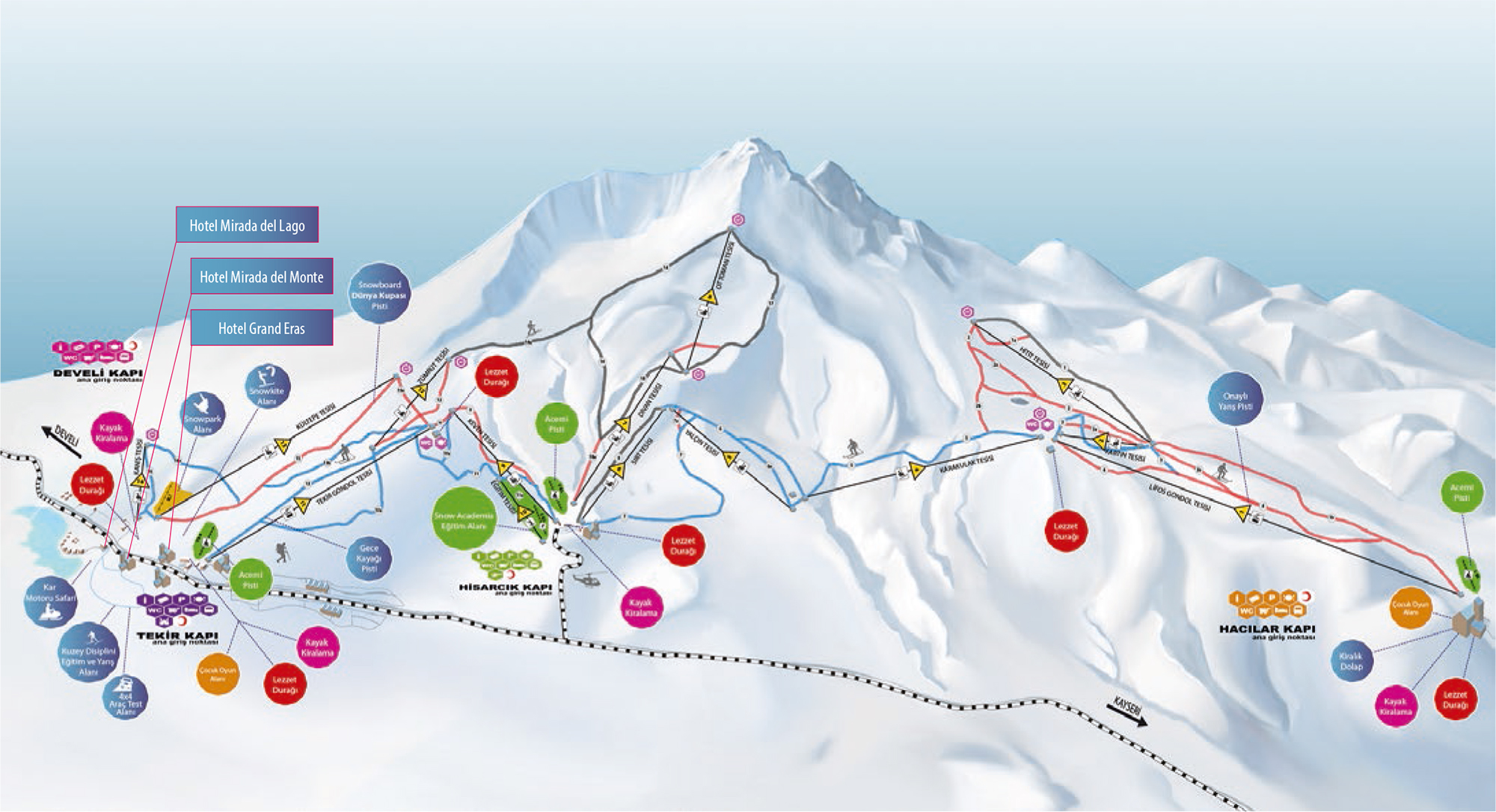 Эрджиес – один из популярных молодых горнолыжных курортов Турции, где созданы все условия для комфортного отдыха: разнообразные трассы для катания на горных и беговых лыжах, подъемники, горнолыжные школы и индивидуальные занятия с инструктором. Здесь можно не только заняться горнолыжным спортом или альпинизмом, но и отправиться на экскурсию в загадочную Каппадокию и прогуляться по национальному парку Гереме, который входит в наследие ЮНЕСКО. Мы предлагаем туры с прямым чартерным перелетом в г.Кейсери, что всего в 20 км от потухшего вулкана Эрждиес, на склонах которого расположился одноименный курорт.