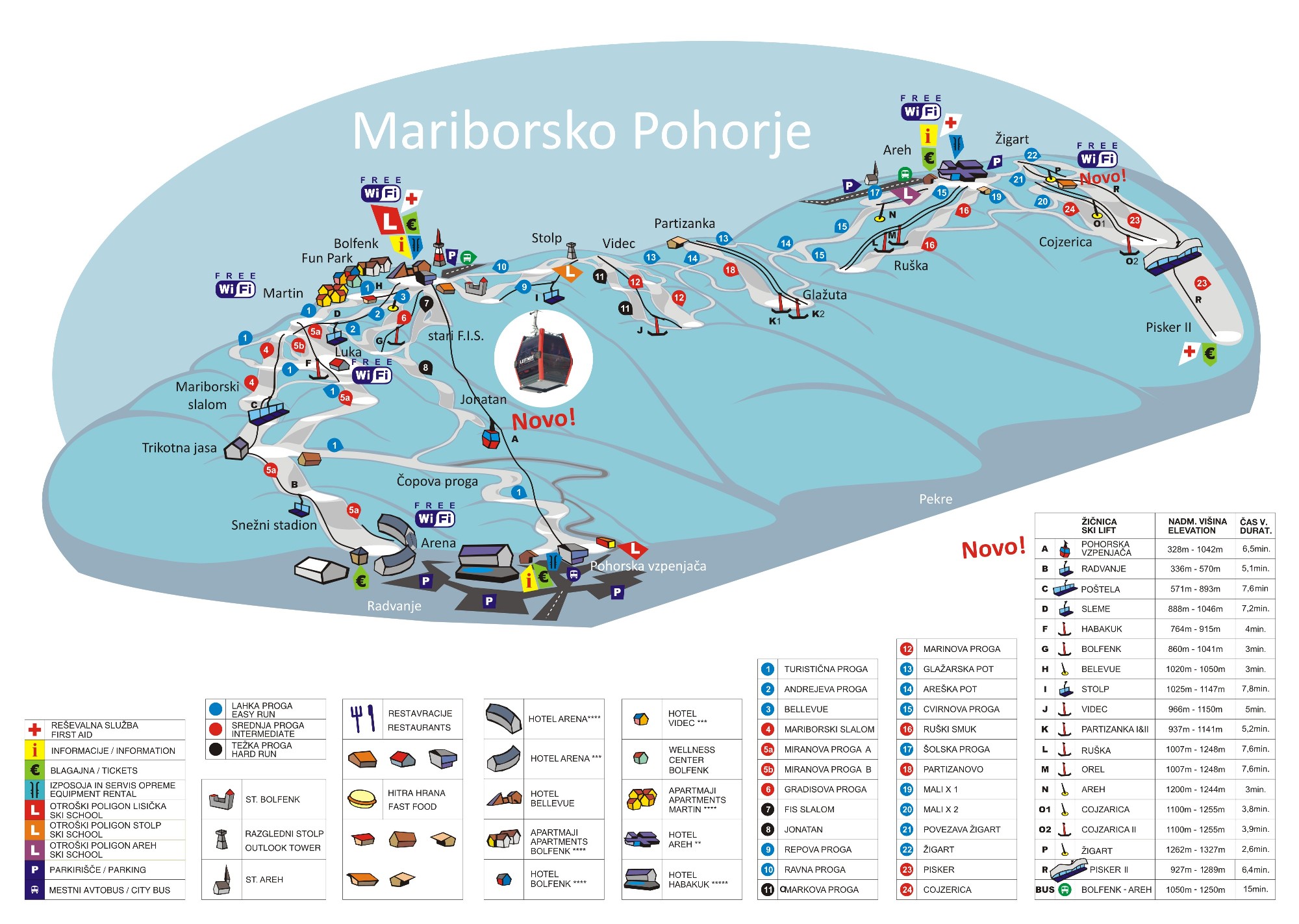 Подъемники: 5 кресельных; 16 бугельных; 1 кабинковая гондола