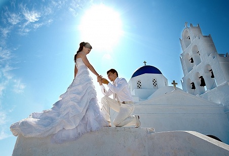 Можно ли представить, более подходящее место для проведения свадебной церемонии, чем великолепный вулканический остров Санторини? Это завораживающее место с волшебным закатом и кристально синим Эгейским морем. Пары всего мира приезжают на Санторини, чтобы скрепить свою любовь вечным дыханием санторинского вулкана на фоне знаменитой кальдеры и мерцания бескрайней синевы Эгейского моря.